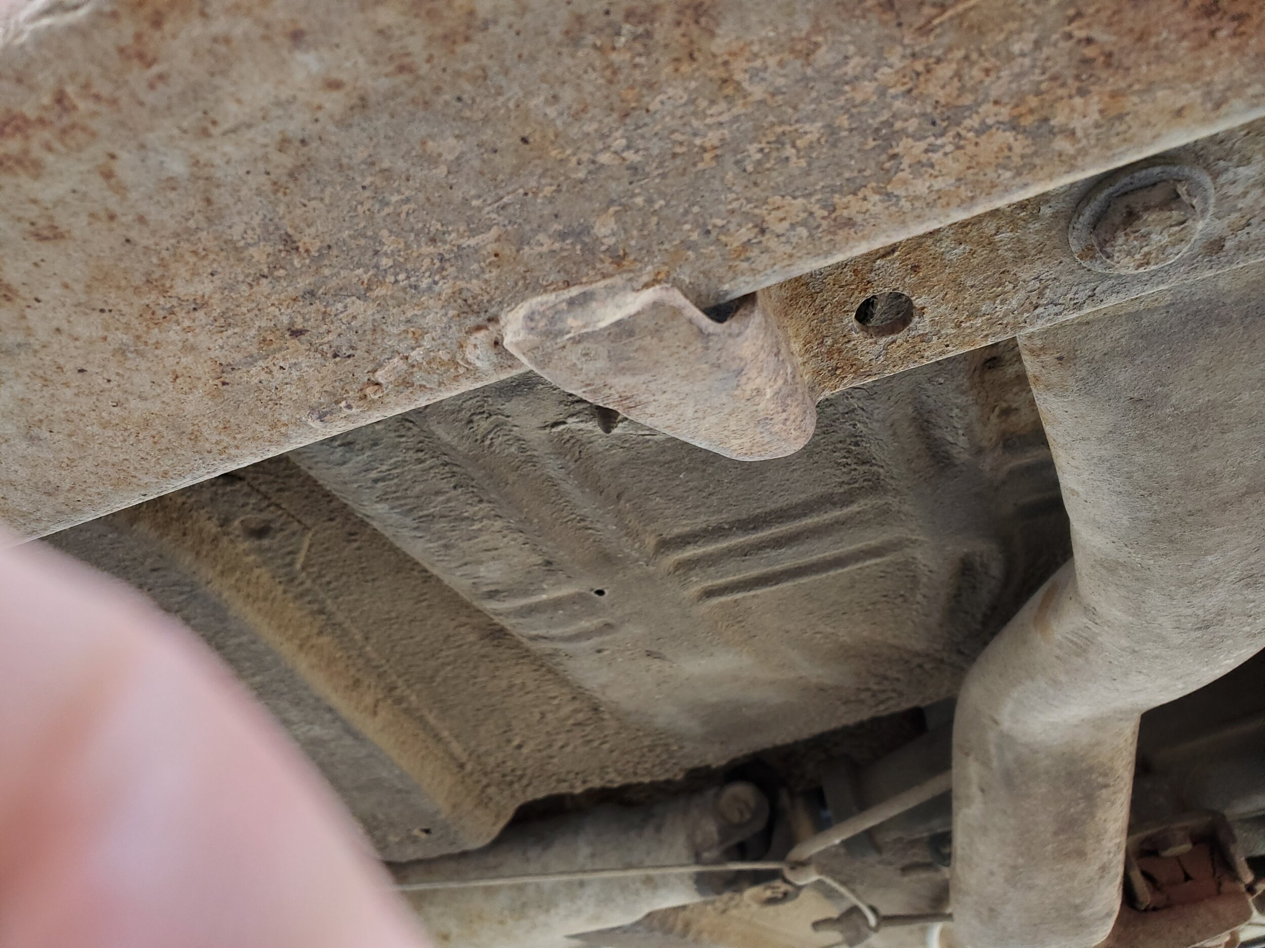 Undercarriage, frame rails, suspension all appear solid with some surface rust but no rust through. Floor boards and trunk also appear to be solid (see many detailed photos of underside of car). No rattles or shakes while driving.